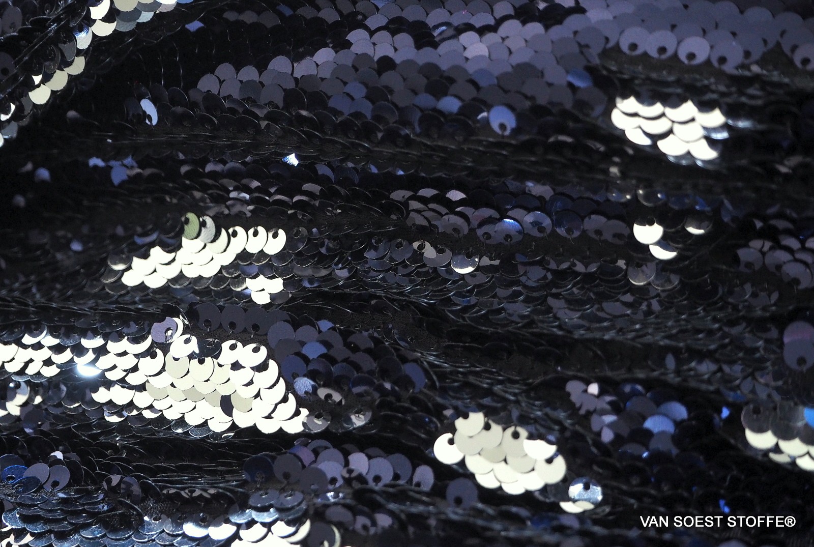 Art. Nr.: 0918 Stretch Zauber Pailletten tief Schwarz- Silber