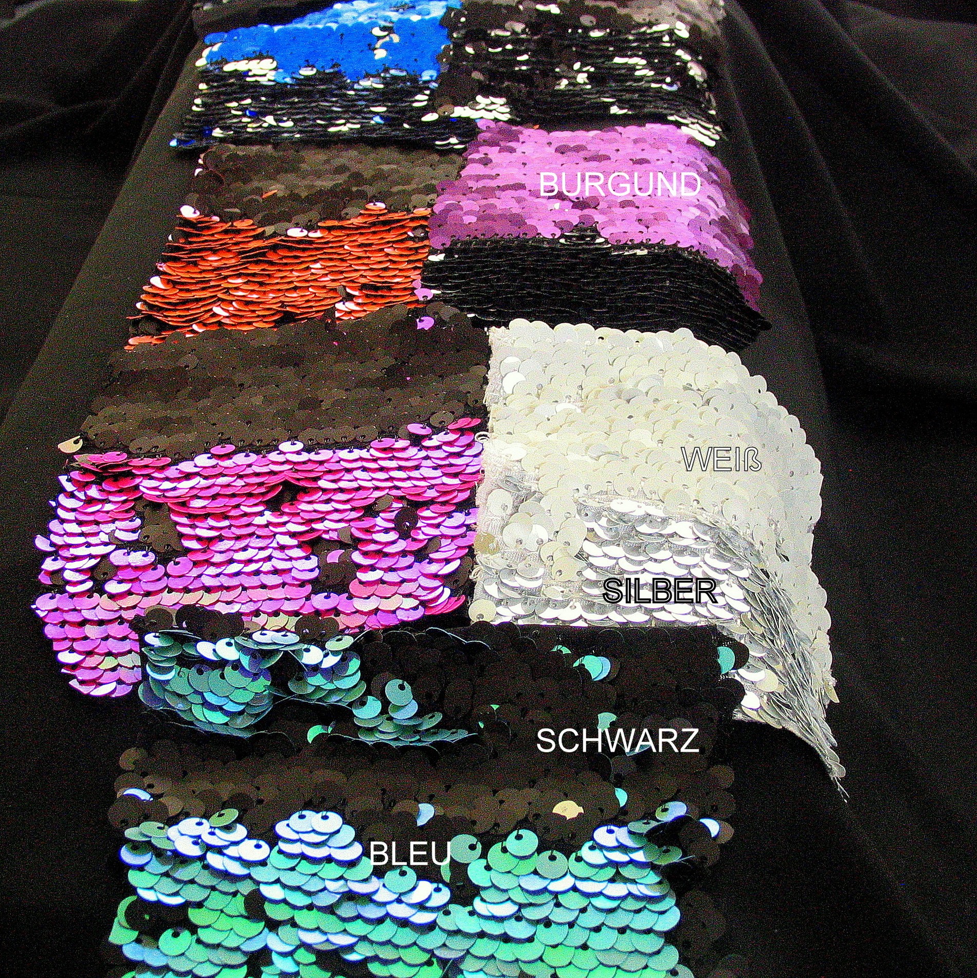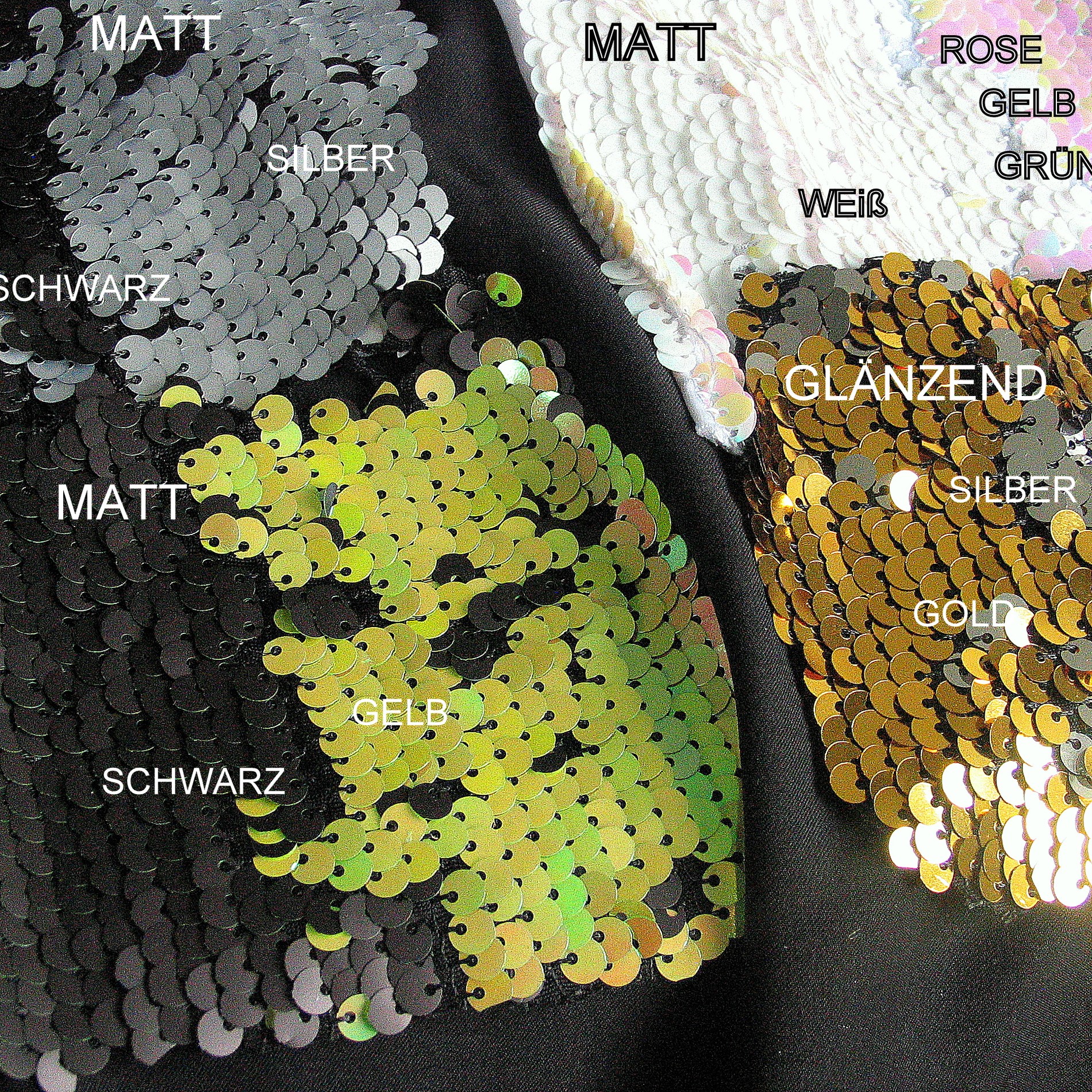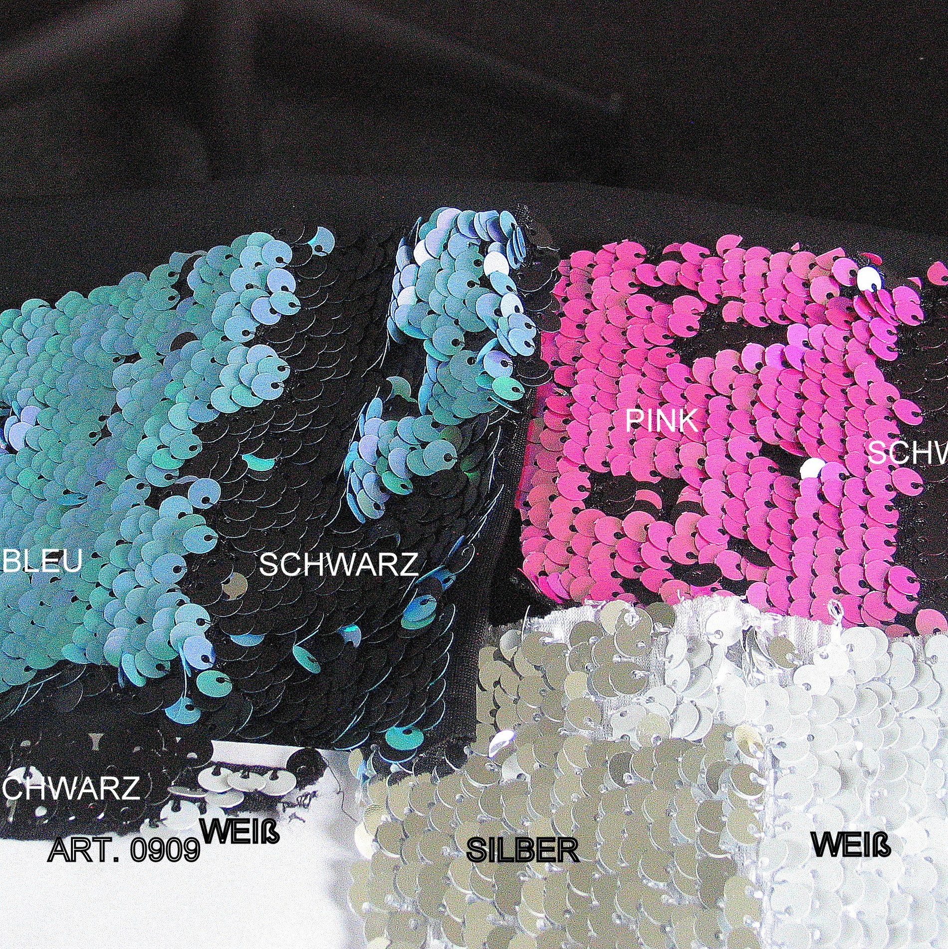Zauberpailletten:Dieser "Renner" hat jetzt weitere Farben im Sortiment aufgenommen. Sie sehen hier die Bilder teilweise aus unterschiedlichen Lichtwinkeln. Artikel 0794, 0909 und 0910 sind zurzeit lagernd und ab 0,5 Meter bestellbar, solange der Vorrat reicht. Bitte bei der Bestellung die jeweilige Farbe aufgeben. Das Bild gibt nur Beispiele, nicht alle Farben sind im Lager. Bitte geben Sie bei Ihrer Bestellung separat per E-Mail die gewünschte Farbkombination an. Hier kaufen Sie die neue Farbe schwarz-Silber, die Pailletten haben einen Durchschnitt von 0,5 cm.