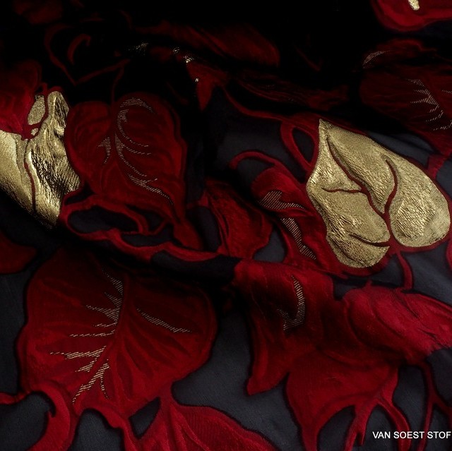 Dallas Couture Gold-Lamé Blätter Jacquard in Rot - Gold - Schwarz