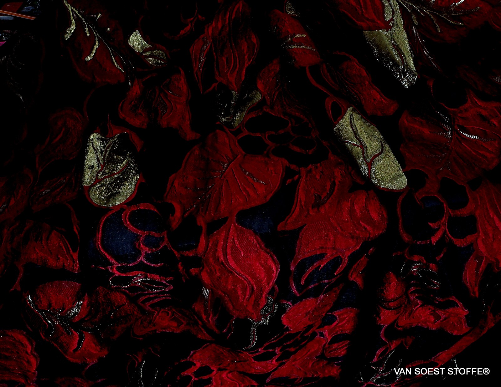 Art. Nr.: 1672 - Dallas Couture Gold-Lamé Blätter Jacquard in Rot - Gold - Schwarz