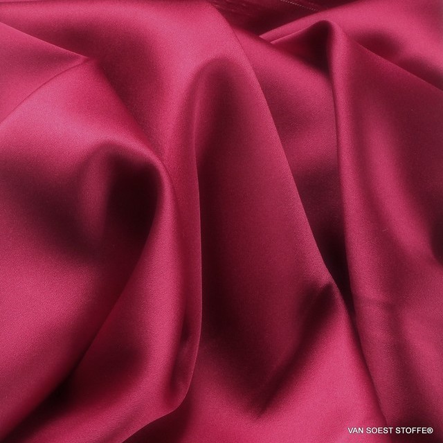 Seidenstoff online: Tolle neue Farbe in unserer Seiden Range von ausgefallenen Farben. Die Ware besticht durch Stretch, Fall und Farbe. Super Stoff für enge Kleider und Blusen und passend zu manchen unserer Spitzen-Stoffe. Hier kaufen Sie das Kirschrot. Neue Ware ist bereits eingetroffen.