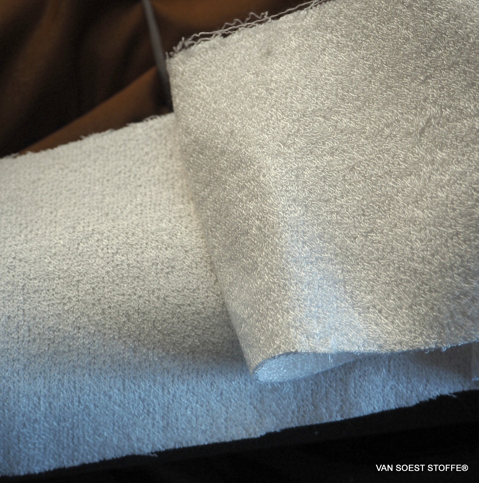 Bambus: Neu entwickeltes spezial Frottee Stoff in supersofter Ausführung für nachhaltige Produkte in rein Weiß. Zweiseitige Verarbeitung ist hier möglich.
