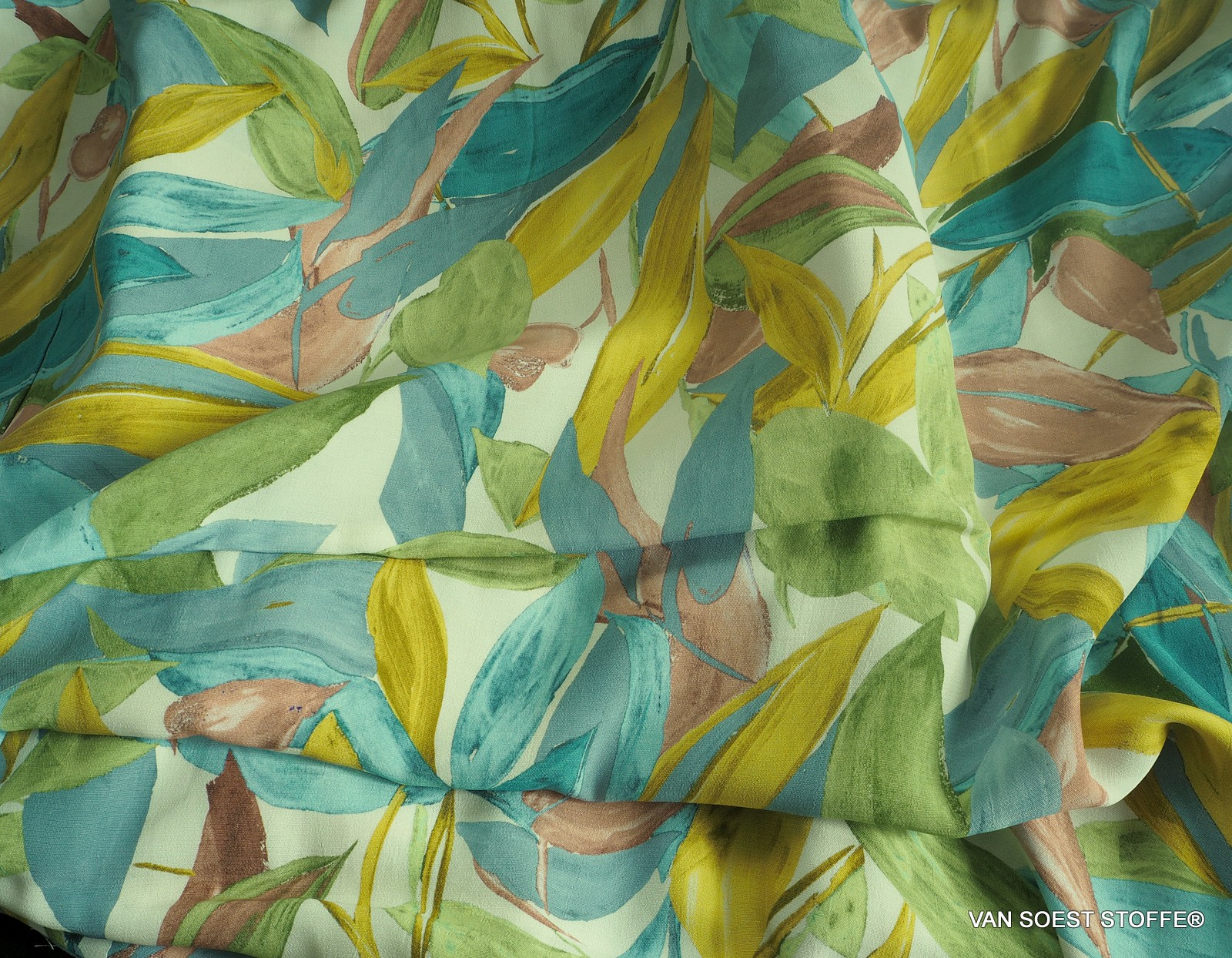 Art. Nr.: 2153 - bunter Fascination Blätterprint auf Viskose Crepe