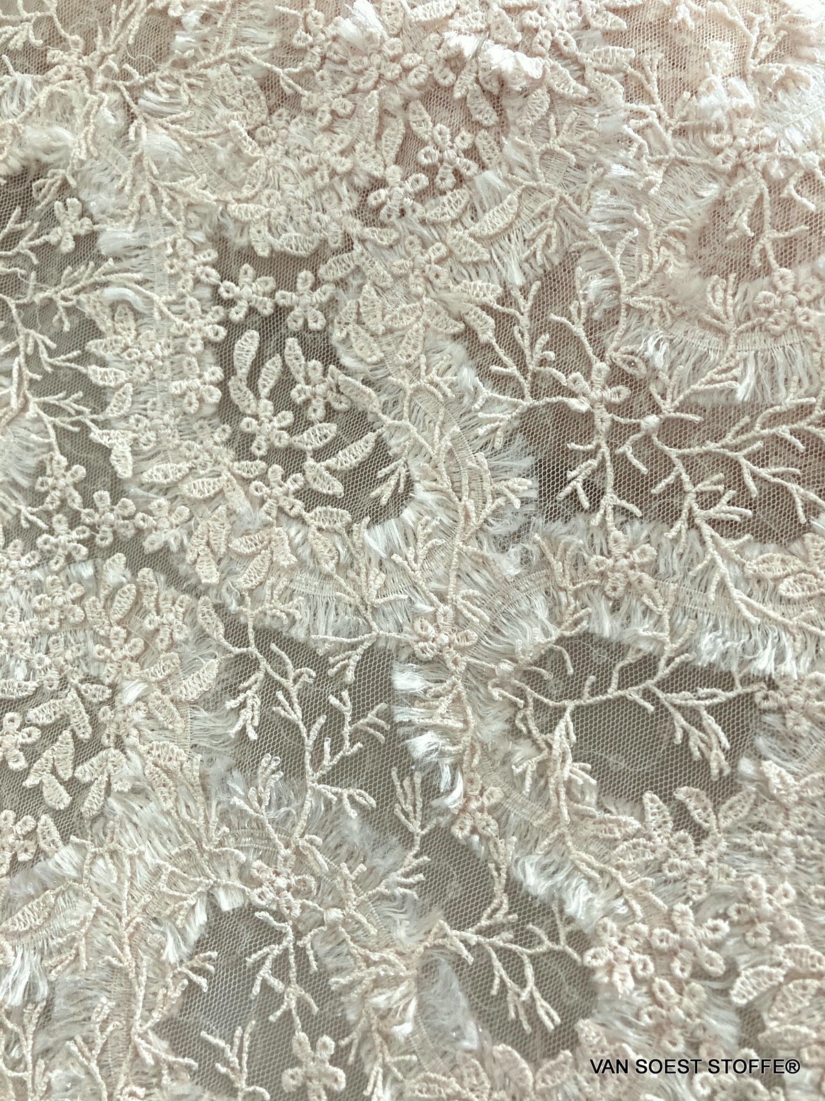Art. Nr.: 2220 - Hellbeige doppelt bestickte Couture Traumspitze mit mini Pailletten auf Ton in Ton Feintüll