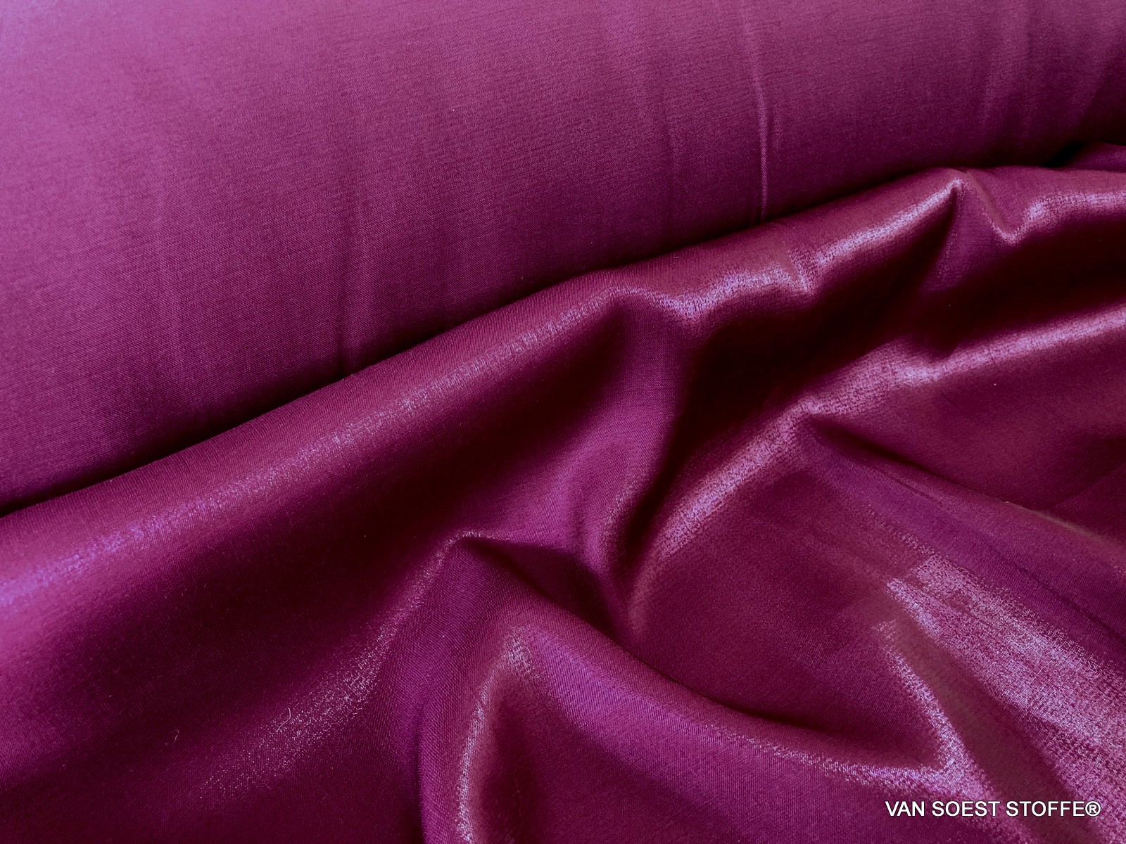 Dieser schöne, modisch glänzende, Duchesse Imitat Stoff in Magenta, eignet sich hervorragend für Gardinen, Deko, Sets usw. & selbstverständlich auch für Tops und Blusen oder als hochwertiger Futterstoff. Eine seit Jahren bewährte Qualität, die immer wieder en vogue ist. Eine Seite ist Matt, die andere Seite ist glänzend sprankelnd und gibt so einen tollen Effekt.