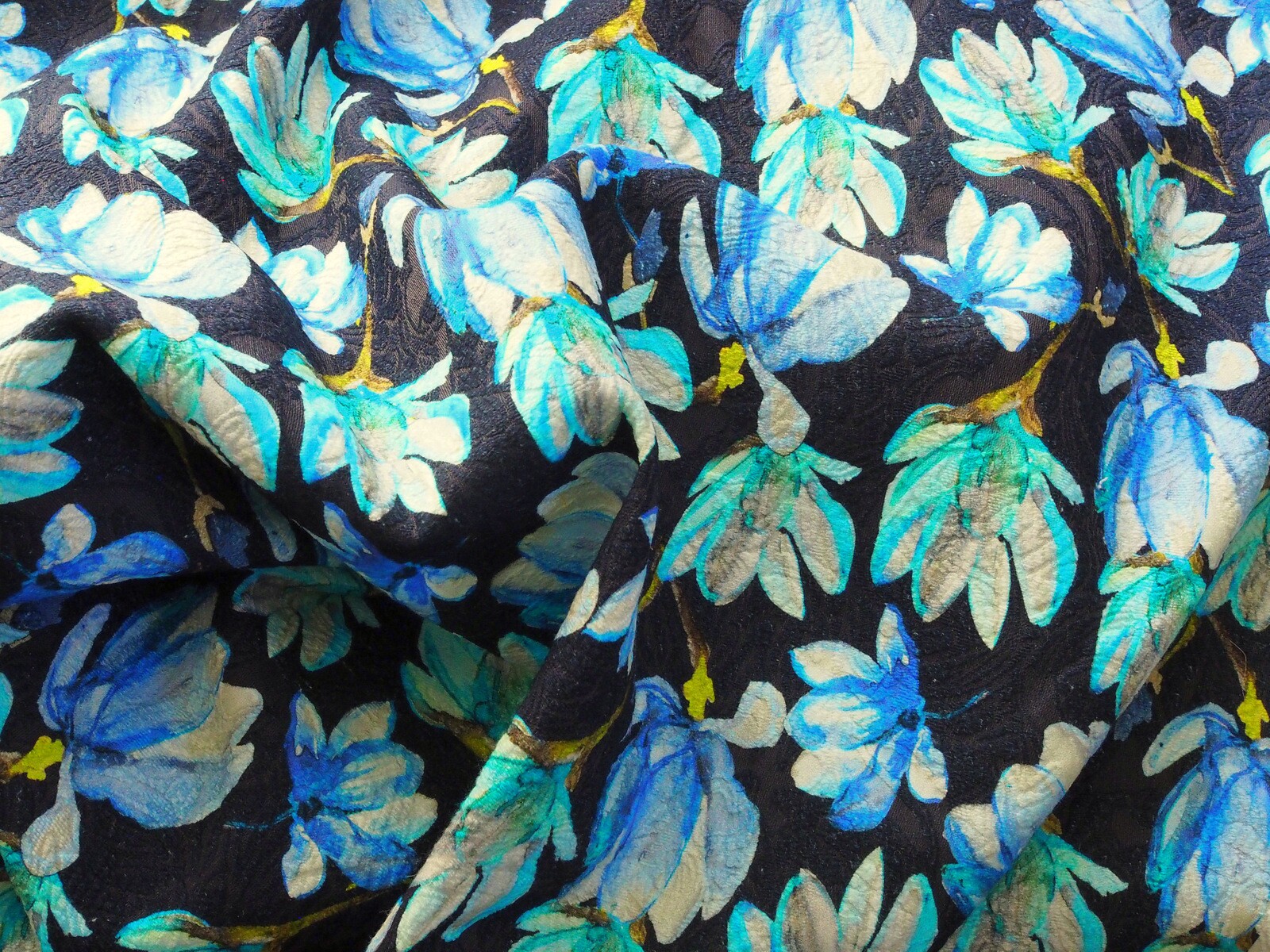- Merkmale: Bedruckt, Blumen, Blümchen, Clocqué, Couture Stoff, Designer Stoff, Gewebe, Jacquard, Mehrfarbig, Nachhaltiger Stoff, Natürlich, Stretch