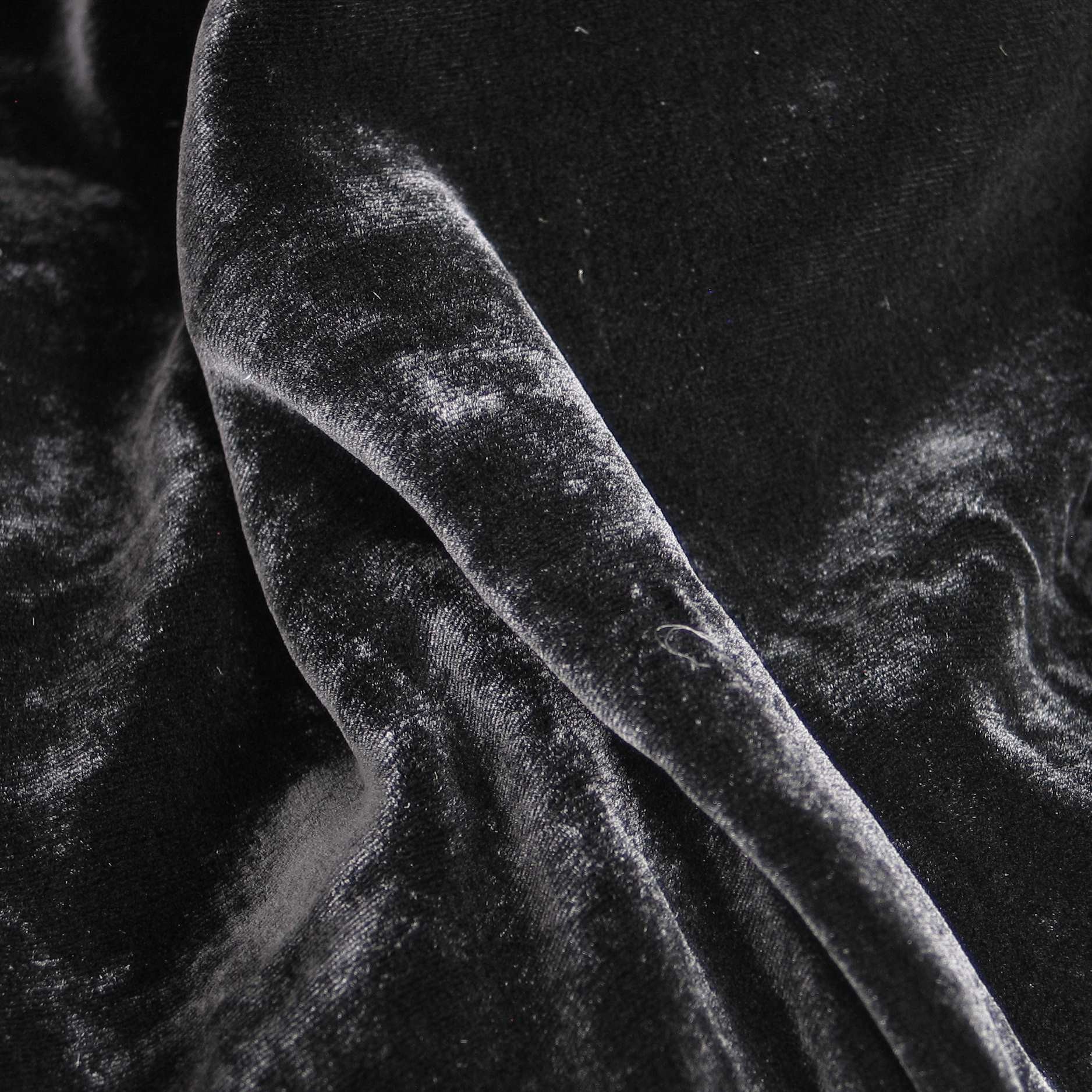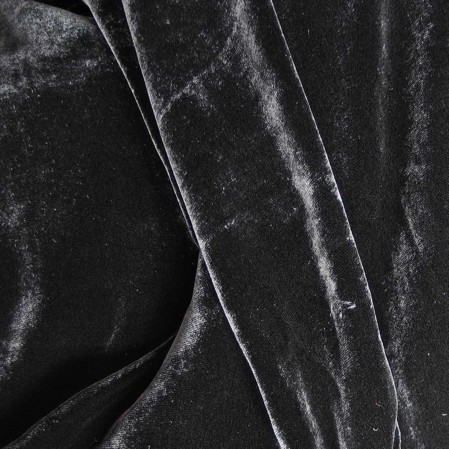 Traumhafte hochaktueller Seiden und Rayon Mischung Samt, Artikel jetzt wieder im Shop. Neue Mischung mit traumhafter weicher Oberfläche für hochwertige festliche Kleidung und historische Kostüme. Wunderbar fließender breit gewebter Stoff mit tollem Lüster. Hochwertig und modisch voll im neuen Trend. Leider schon wieder ausverkauft. Neue Ware ab Februar 2026. Vollwertiger Ersatz in Art. "Websamt" in Schwarz.