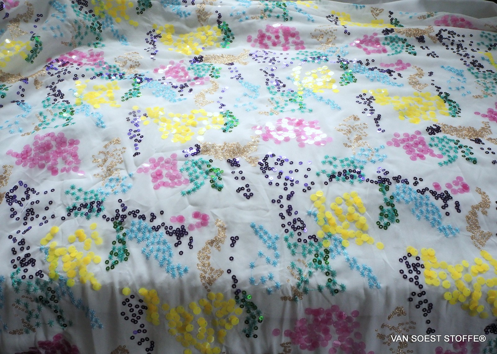 Art. No.: 1536 - Sommer Pailletten Kunst auf weißen Chiffon