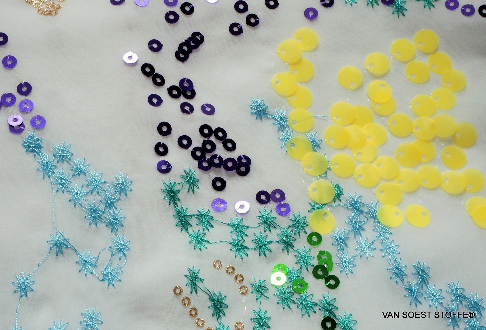 New theme in the sequins range: summer sequins + embroidery. High summer sequin arrangement mixed with playful embroidery. Great for light blouses, tops, skirts and much more. Unique.....