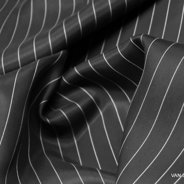 Matt Shiny Dandy Fine Stripe Satin Cupro Mix Black White