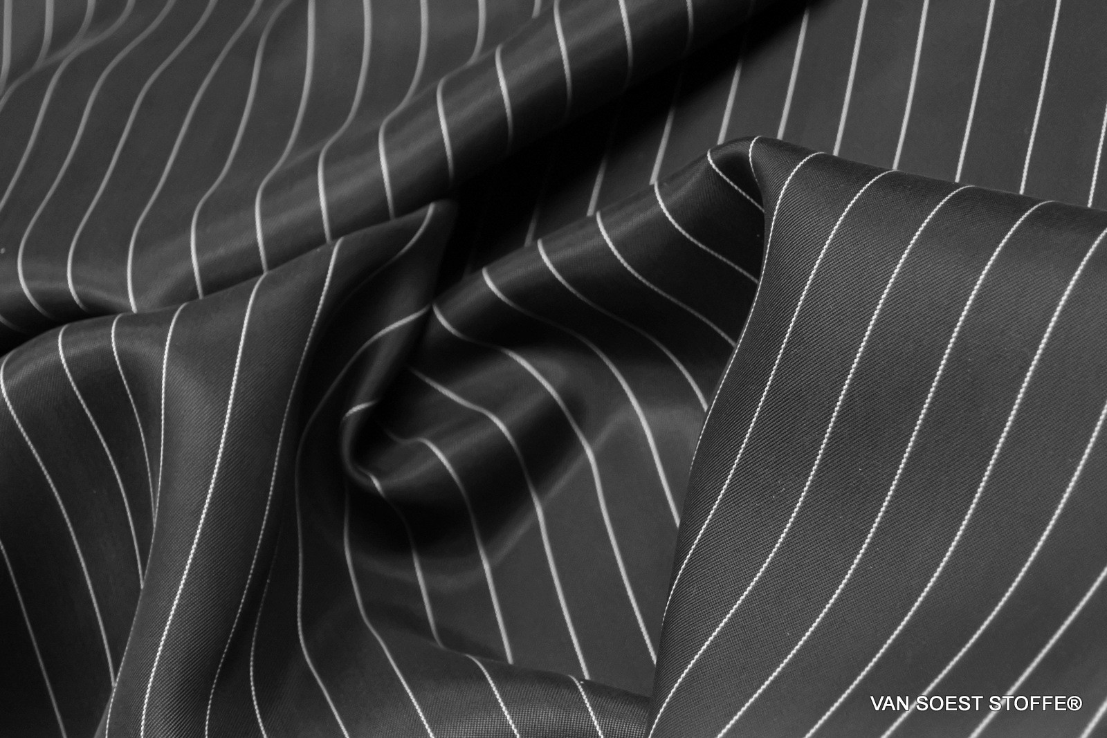 Cupro - Viscose - Pes 2% Dandy fine stripe matte satin - A new product in our series of sustainable fabrics. This stripe is super noble, captivates with its great fall, incredibly soft handle, and is very cuddly. Modern sewing projects can be perfectly realized.