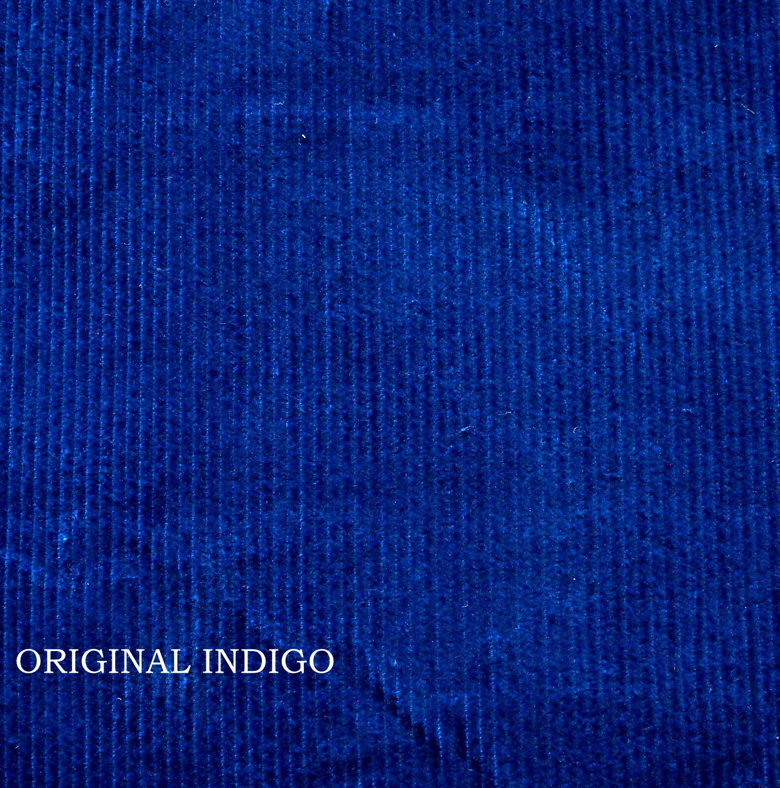 Indigo corduroy dyed 16 w. fine corduroy. The fabric must be processed and then washed. Slight discolouration must be accepted with this original indigo. Please wash separately in a laundry bag. A unique patina develops with each wash.